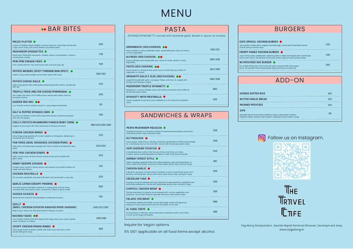 Welcome to The Travel Cafe, a charming eatery nestled in the serene surroundings of Gangtok at Tag Along Backpackers. As a vibrant cafe, it stands out not just for its delicious offerings but also for its warm and inviting atmosphere, making it an ideal spot to unwind after exploring the picturesque landscapes of Sikkim.